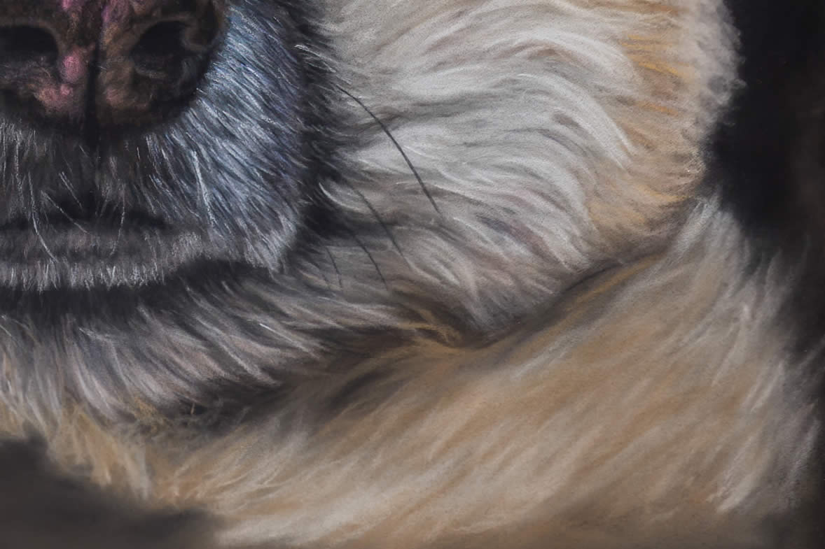 The image of Ben was quite small on the photo, it was enlarged and reprocessed. The background replaced with a simple, complimentary fill and some fur work added to replace the arms of the owner.