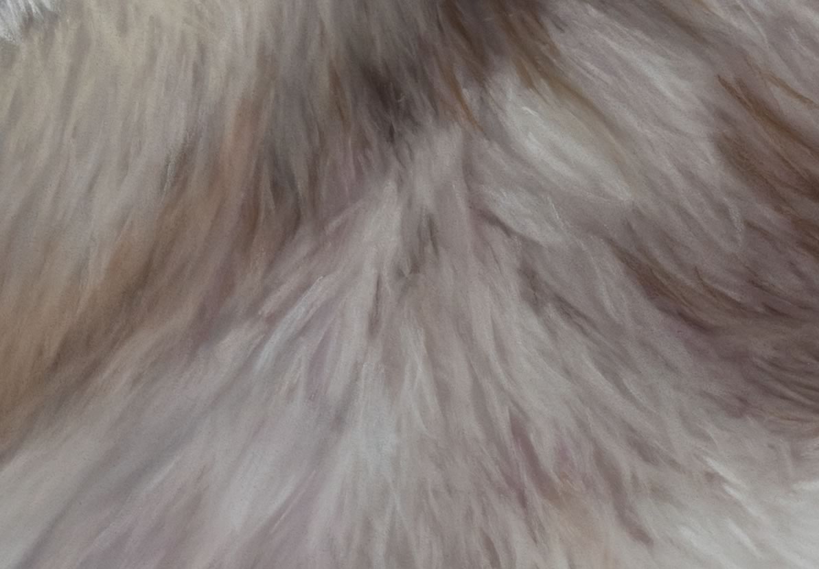 Every portrait has its own unique challenges. Malik is no exception. The fur colour has hints of violet and purple and trying to achieve the same tone from layering the pastels was quite challenging.
