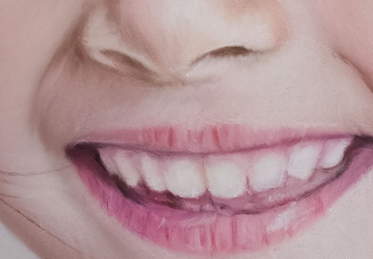 Highlights recovered and midtones increased leaving the skin tones with more warm, rich pinks and reds. The difficulty with this piece was the shape of the cheeks, more so the right, due to the girl smiling.